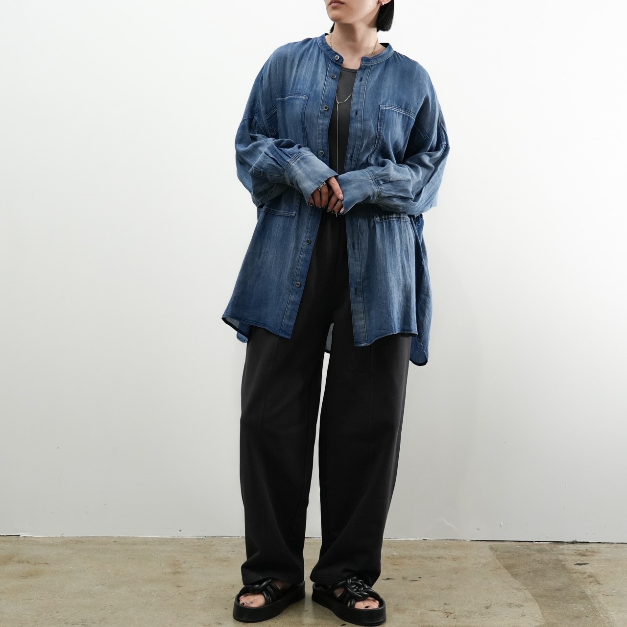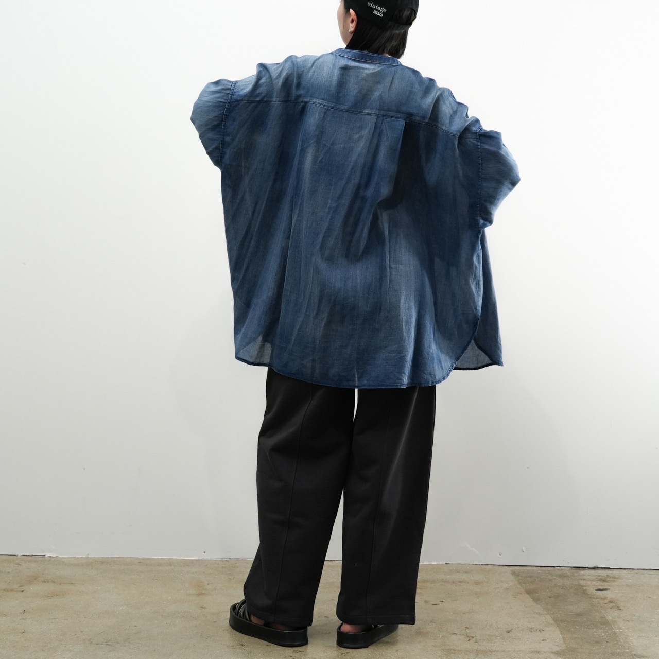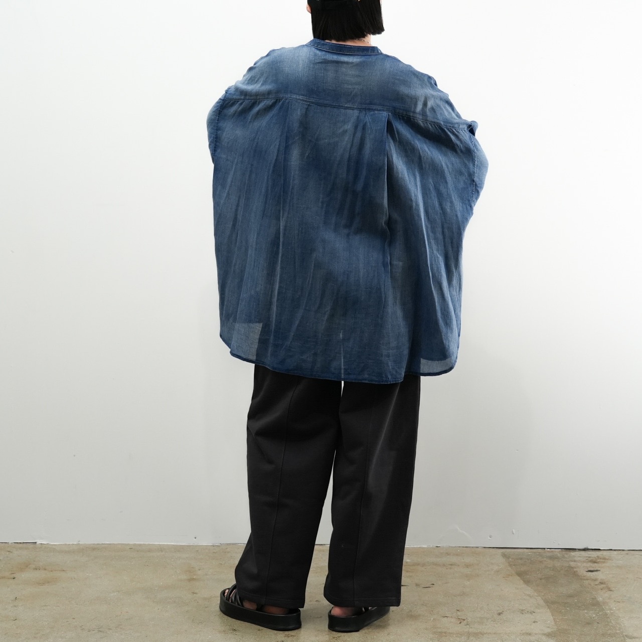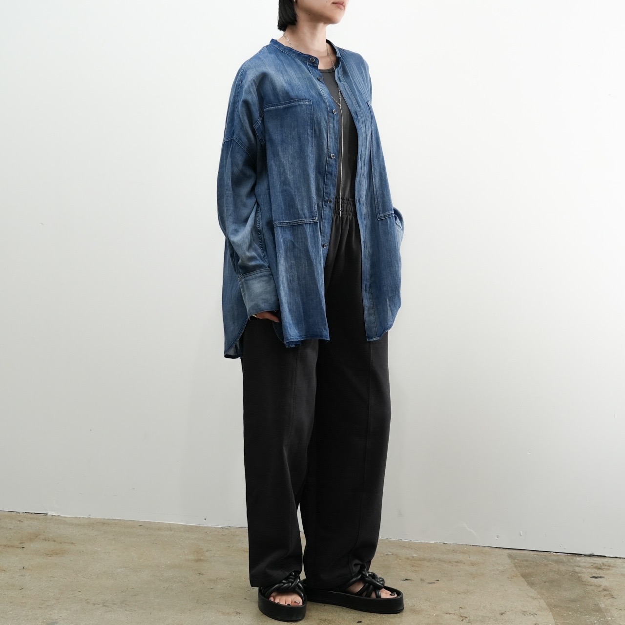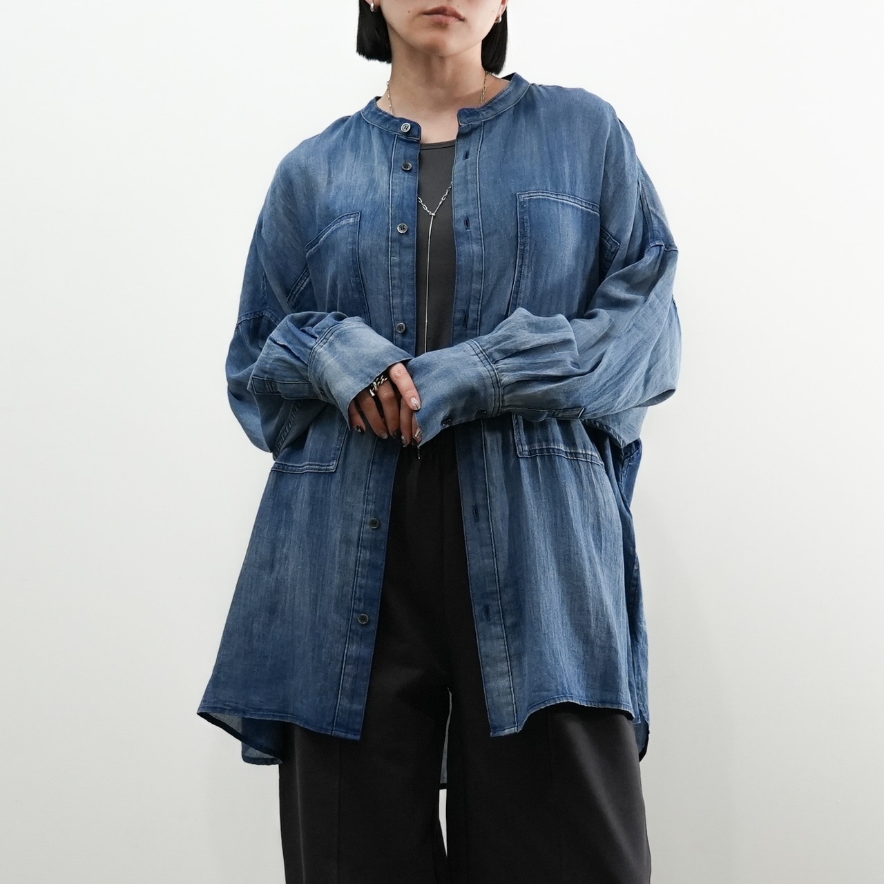 軽くて柔らかい“2.5オンス”のライトデニムを使用したノーカラーシャツ。