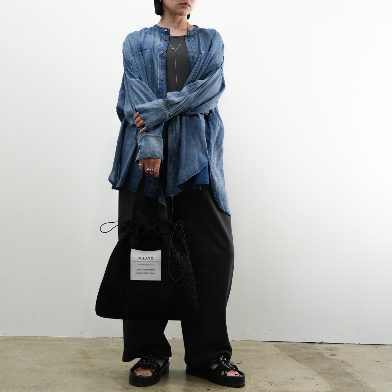 前後差のある着丈はバランスが取りやすく、さっと羽織るだけで自然とサマになります。