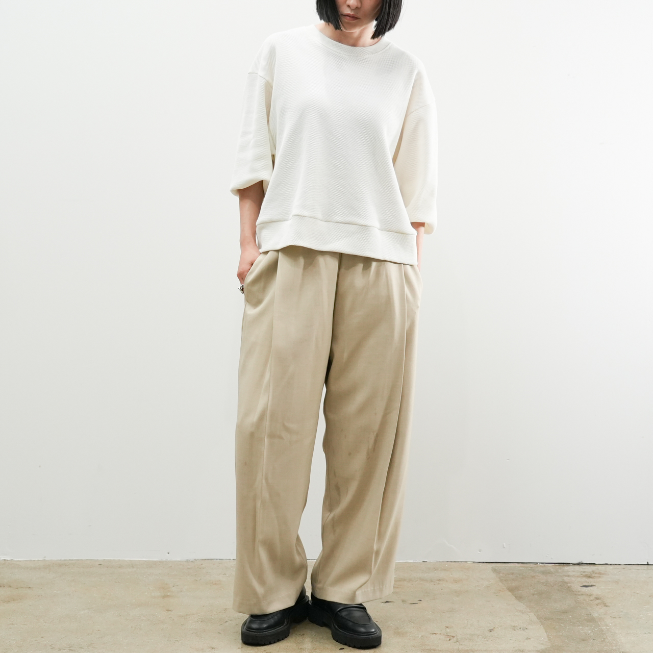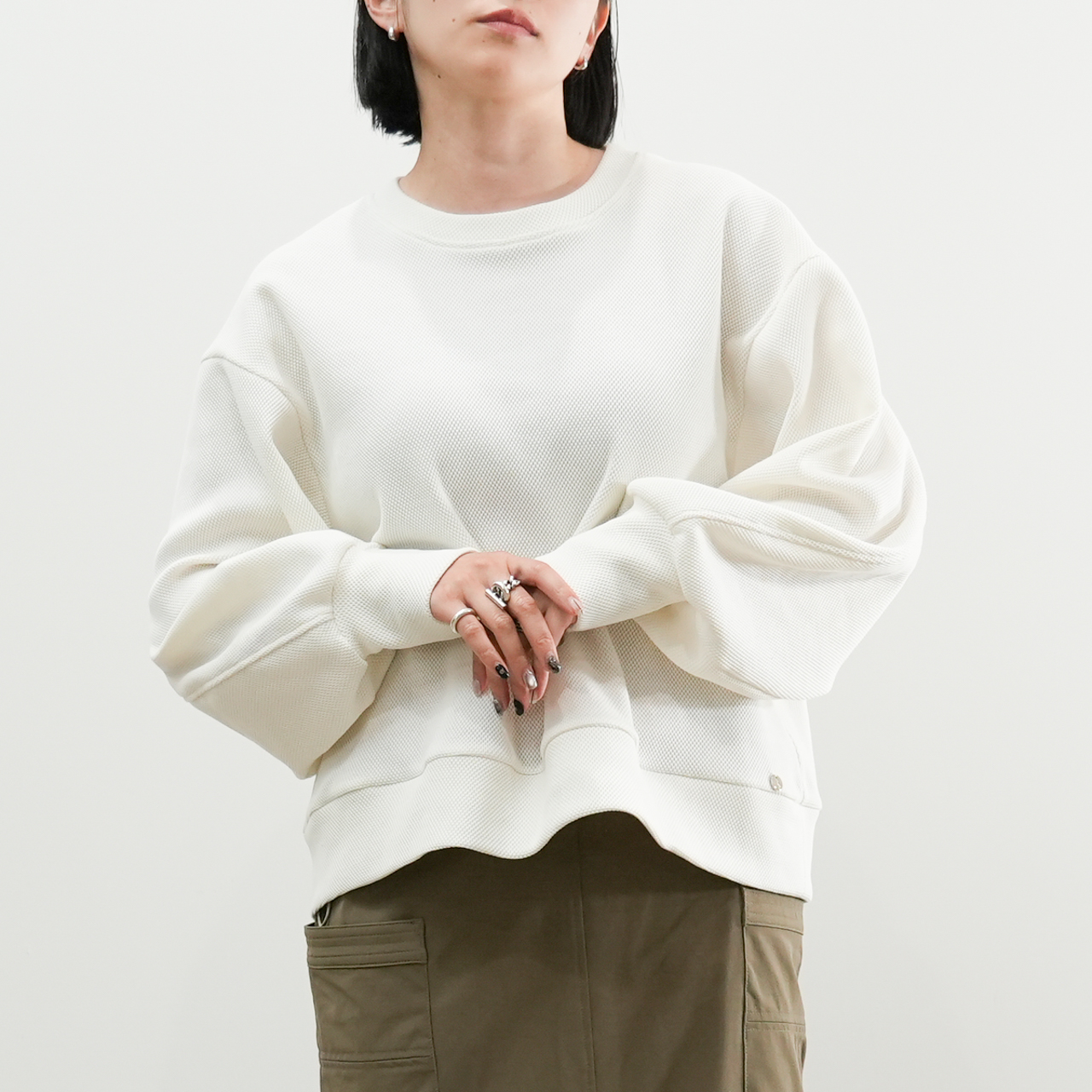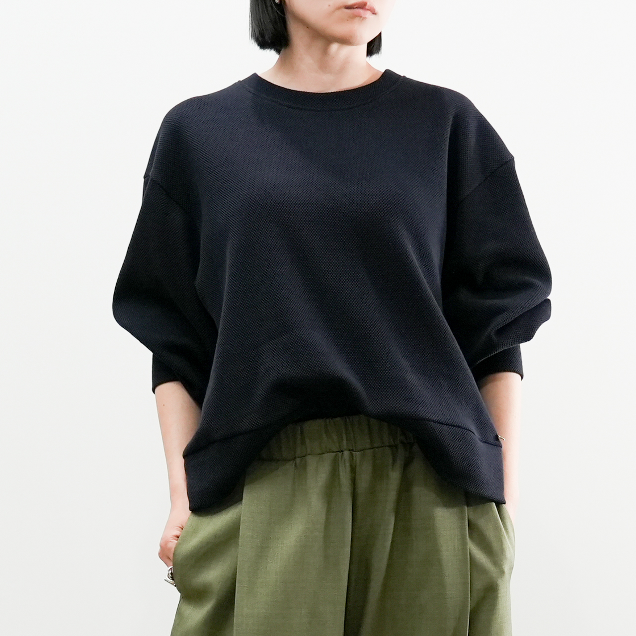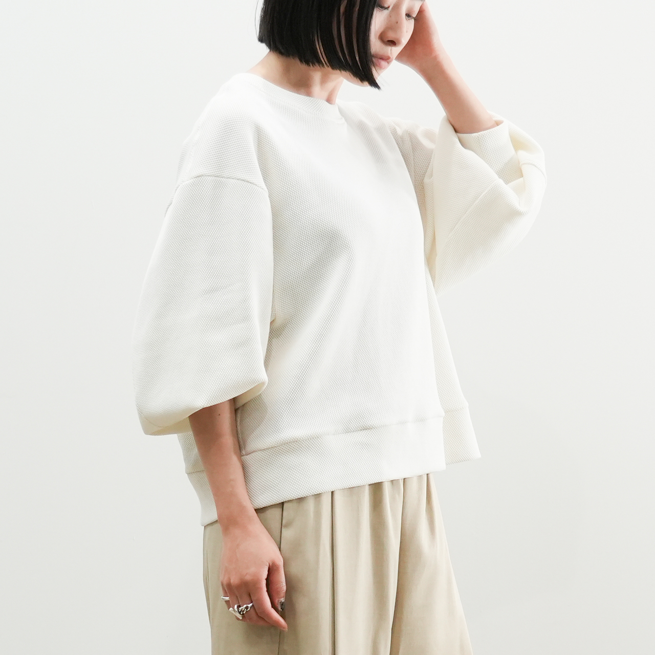 落ち感のあるドロップショルダーと程よくゆるい袖が、こなれた抜け感を演出。