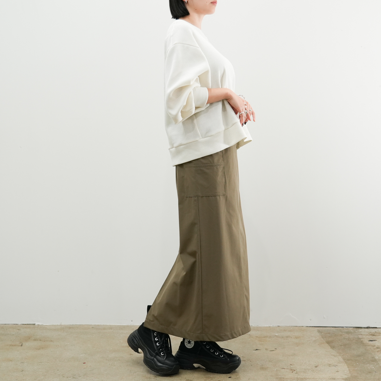 長めの裾リブがシルエットにメリハリをつけてくれるから、アウトスタイルでもサマになります。