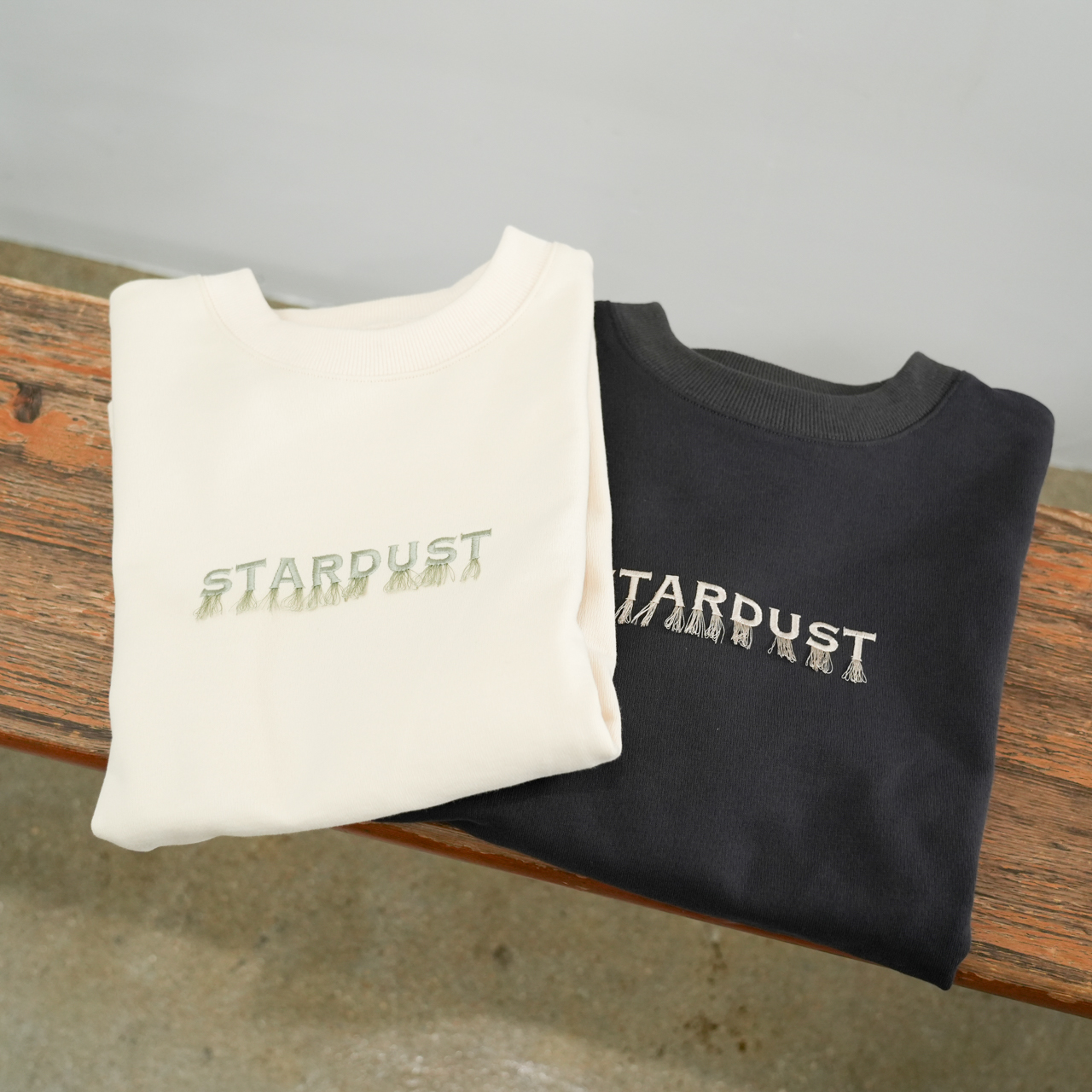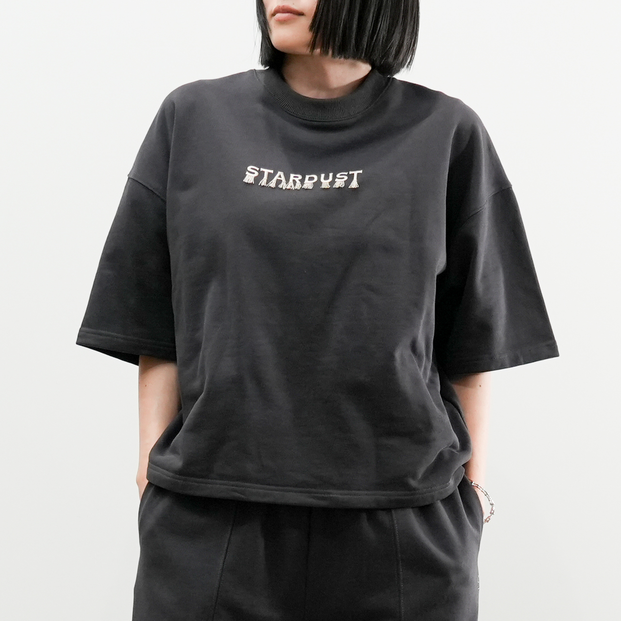 ロゴの下に施された繊細なフリンジ刺繍は、動きに合わせて揺れる立体的なデザインで、