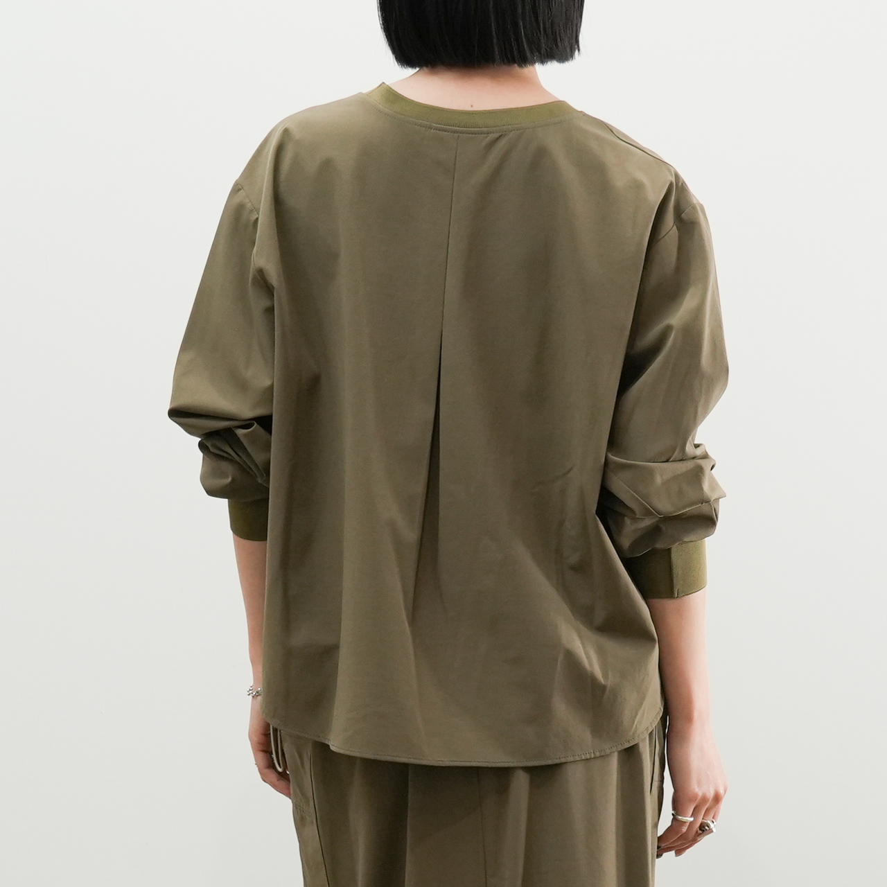 ドロップショルダーとゆったりとしたシルエットが、身体のラインを拾わず、リラックス感とこなれた抜け感を両立してくれます。