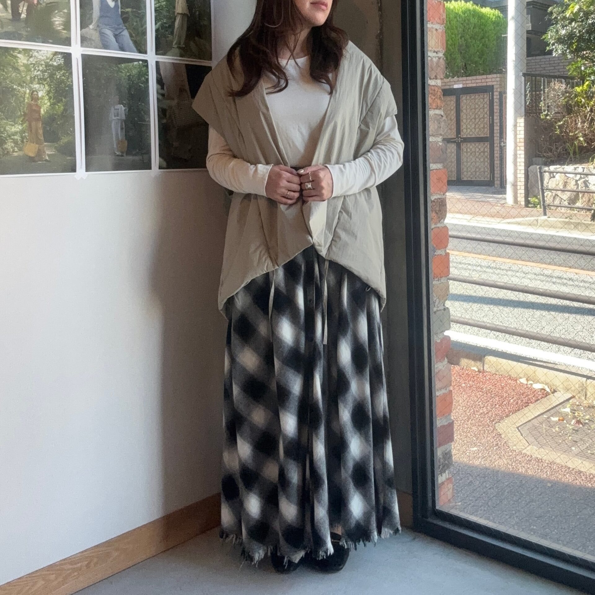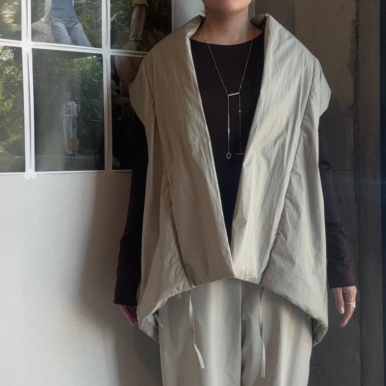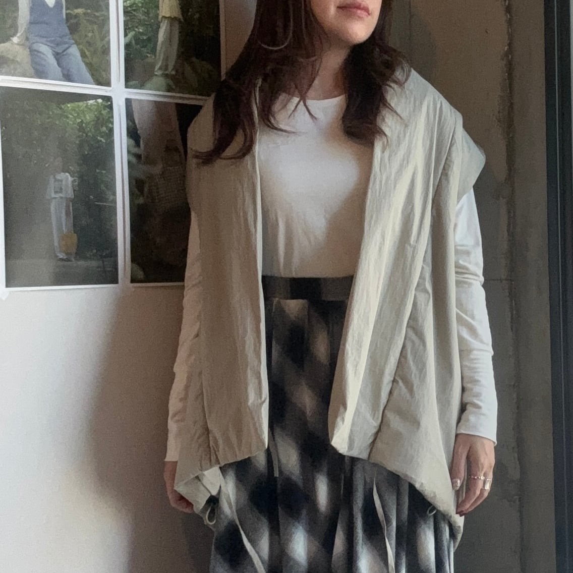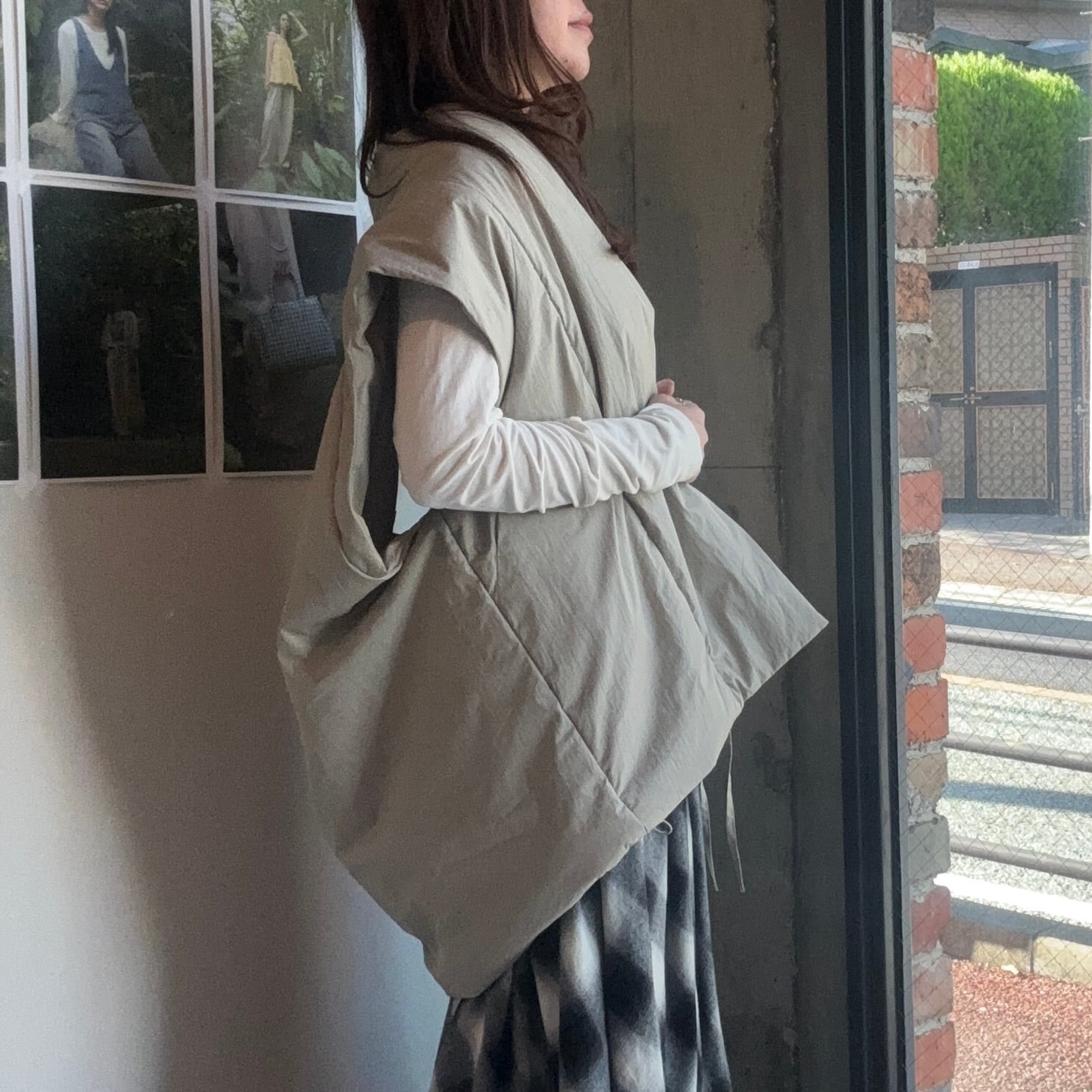 立体的なフォルムが印象的な、モードな中綿ベスト。