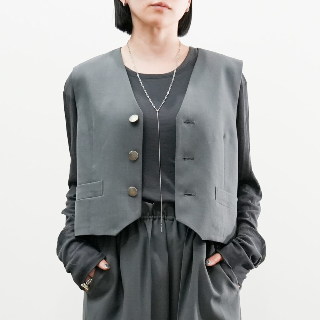 ベストならではの魅力は、やはり重ねるだけでスタイルが完成すること。