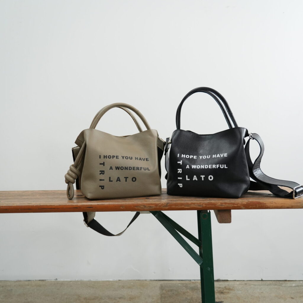 軽くて柔らかな牛革に、RILATOらしいメッセージをプリントしたELAN MINI TOTE PRINT。