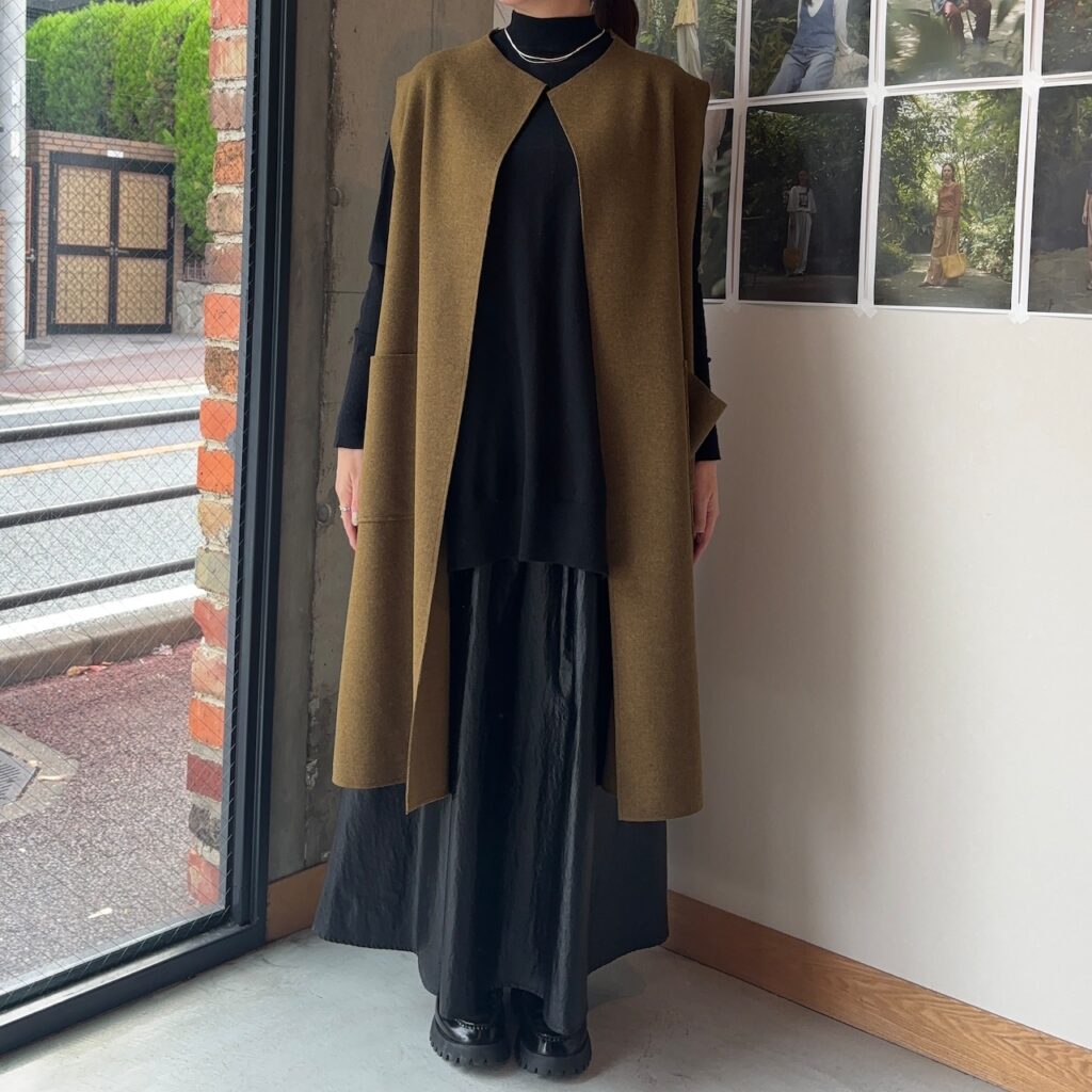 “ただ羽織るだけで整う”洗練されたロングベストです。